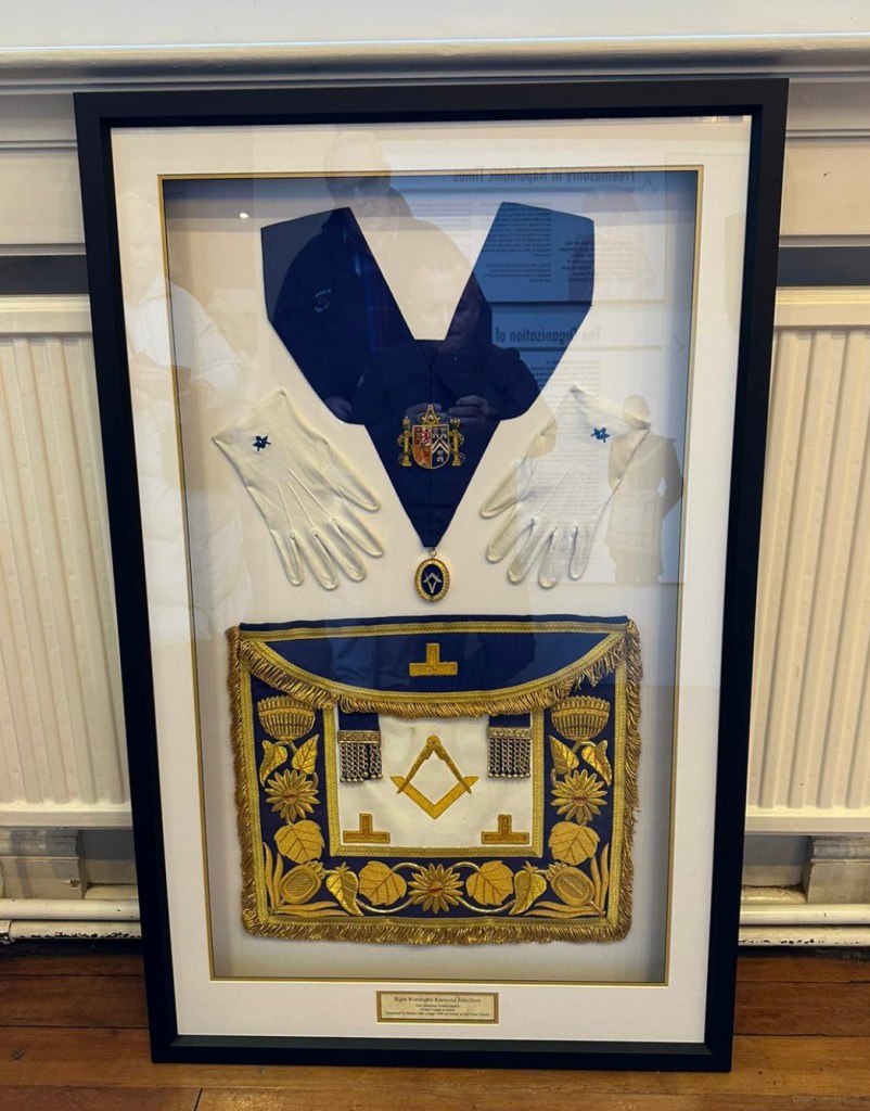 Last Saturday, 25th March, 11 members of Honor Oak lodge, including 5 members of Ray’s family, together with his widow Ellen, presented his Spanish Grand Lodge regalia to the Kent Museum of Freemasonry in Canterbury.